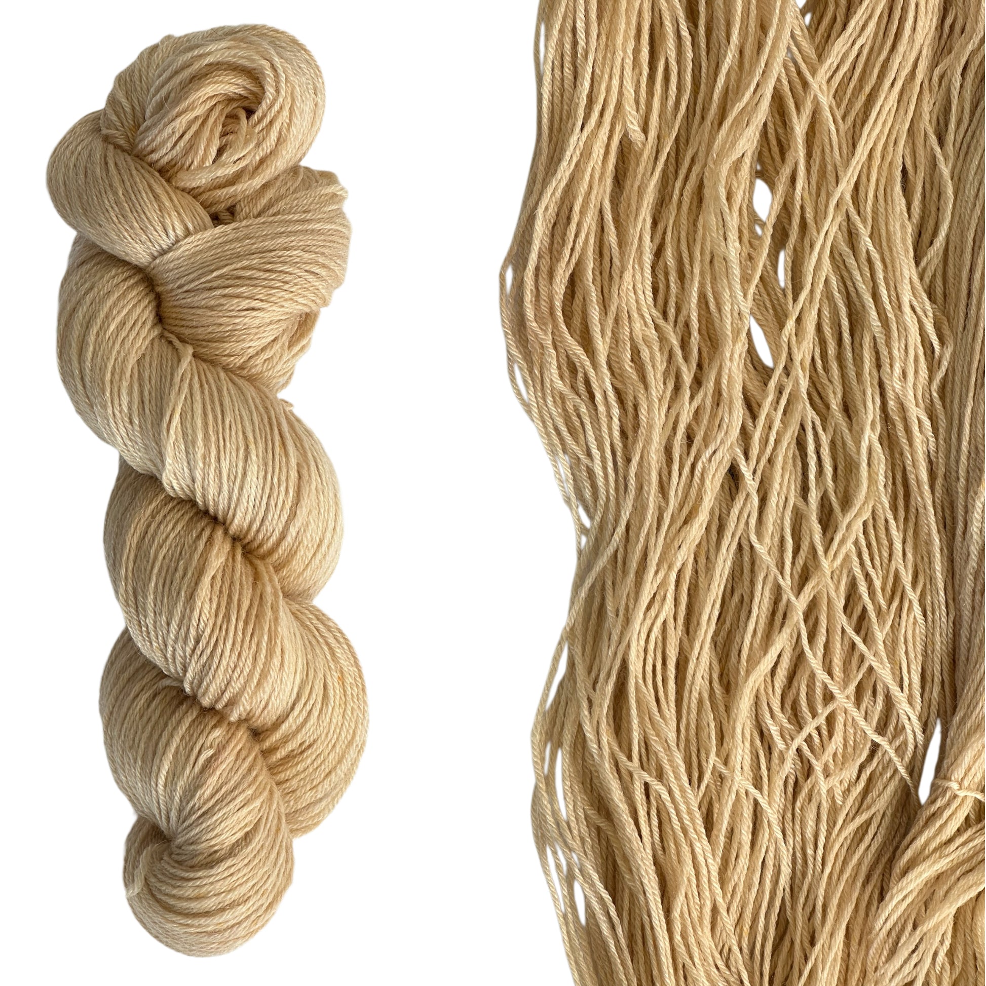 Eco Sock is a sustainable, planet-friendly yarn. Made from recycled merino wool and tencel, it offers a soft yet structured feel with a touch of crispness and a graceful drape. The fiber blend gives colors a slightly muted, heathered effect when dyed—adding depth and character to every skein.